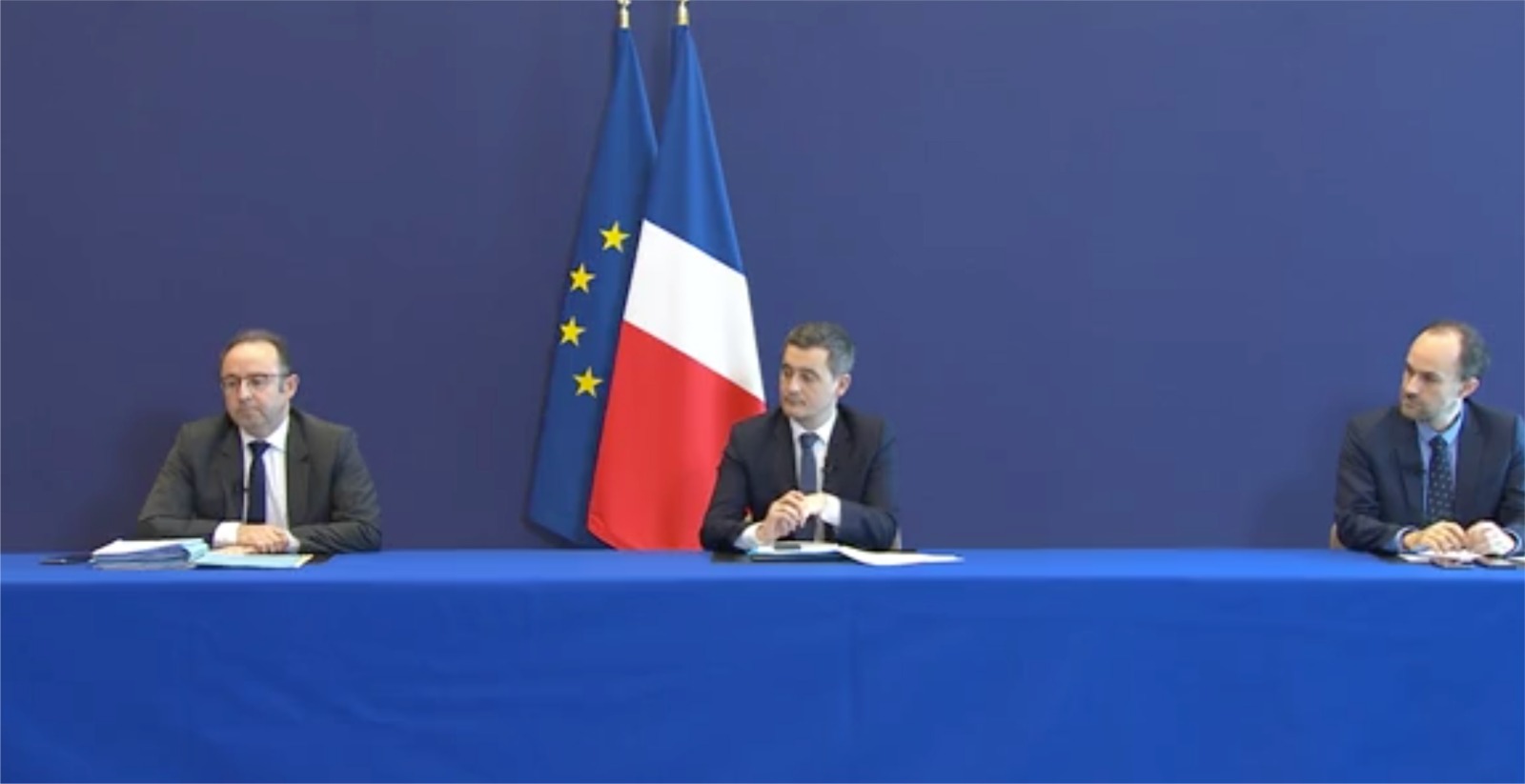 Yann-Gaël Amghar, Directeur Général de l’Urssaf Caisse nationale, aux côtés de Gérald Darmanin, ministre de l’Intérieur et ancien ministre des comptes publics et Jérôme Fournel, Directeur Général de la DGFIP avec les entreprises et les indépendants.
